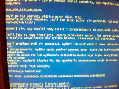 kurcze wczoraj musieliśmy zrobić kolejny format,wyskoczyła niebieska strona(niestety na tyle szybko znika że nie zdązy sie przeczytać o co chodzi)I juz nie dało się uruchomić komputera,niby próbował sie ładować ale po chwili znów niebieska strona i reset.