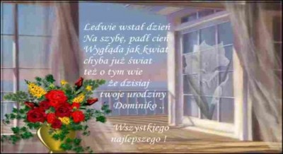 I jeszcze ja ... dawno nie zaglądałem, więc spóźnione nieco ... cóż Dominiko miłości i zdrowia życzę Tobie ... i podążaj scieżakmi swego serca oraz za pragnieniem swych oczu ...