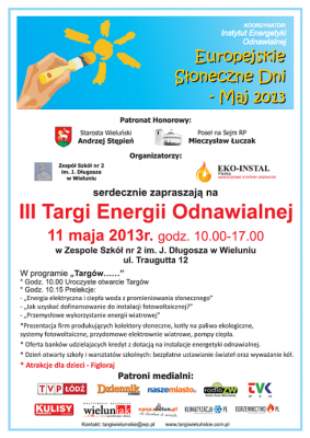 Zapraszamy już dziś na trzecią edycję Targów Energetyki Odnawialnej w ramach Europejskich Dni Słonecznych.