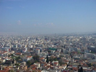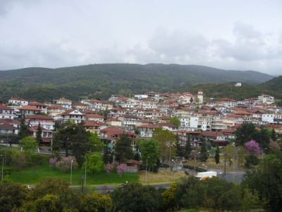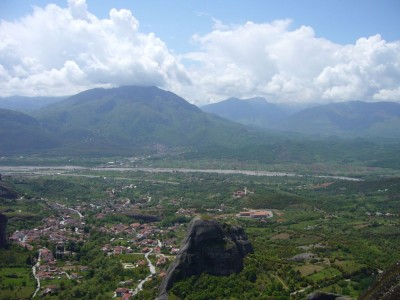 Meteory - panorama miasta z poziomu najwyżej położonego klasztoru