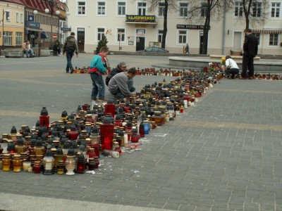 Waszym zdaniem kto zapalił te wszystkie znicze po śmierci Jana Pawła II ? (foto niżej)