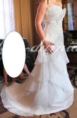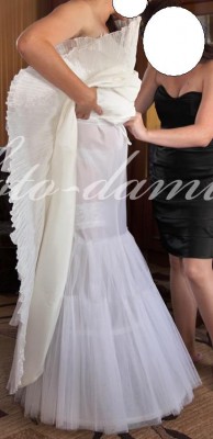 Suknia posiada także halkę (na zdjęciu) na małym kole dzięki której doskonale się układa. (jest oddzielną częścią sukni tzn. nie jest w nią wszyta)