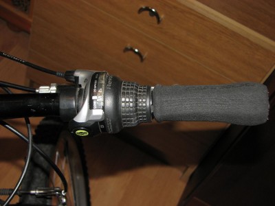 Manetki przerzutek umieszczono w rączkach kierownicy.