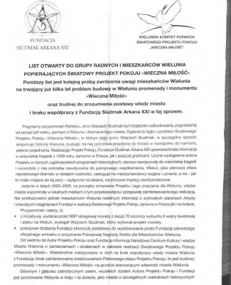 śmieszy mnie też sformowanie: "monument, będący pierwszym krokiem wyjścia z informacją o Wieluniu w świat" czyżby przed 2008 rokiem żaden z mieszkańców Wielunia nie mówił o tym, że wojna zaczęła się właśnie tu ?