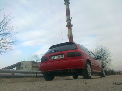 HONDA) :) Stan blacharki oceniam na dobry- przód, progi i podloga w super stanie jedynie tylnych nadkoli moznaby sie doczepić ale dziur nie ma. Samochód doinwestowany dbam o niego. Z tyłu czarne lampy ładnie sie prezentuja z czerwonym i wydech końcowy basowy ULTER (kosztował mnie 400pln) mam tez oryginał wiec nie ma problemu moge przelożyć. Na zdjeciach są jeszcze stare tablice aktualnie przerejestrowany. Z samochodem nie miałem jak dotąd zadnych problemów i tak jest nadal wsiadać i jechać.