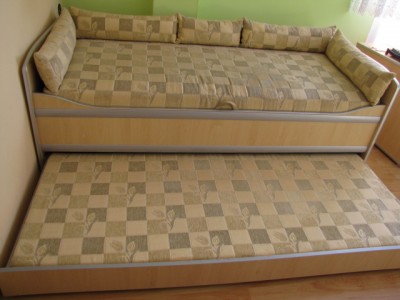ŁÓŻKO JEST UŻYWANE W DOBRYM STANIE. DO ŁÓŻKA DODAJĘ 2 MATERACE PASUJĄCE DO OBYDWU ŁÓŻEK. ŁÓŻKO WYKONANE JEST Z TRWAŁEJ PŁYTY LAMINAT.ŁÓŻKO JEST BARDZO WYGODNE, MATERAC W PIERWSZYM ŁÓŻKU UMIESZCZA SIĘ NA SOSNOWYCH DESECZKACH, KTÓRE SĄ SPRĘŻYSTE. MATERACE POSIADAJĄ POSZEWKĘ ZAPINANĄ ZAMKIEM (MOŻNA PRAĆ W PRALCE). DODATKOWO W ZESTAWIE JEST KOMPLET PODUSZEK (ĆWIERĆWAŁKÓW). JEST ELASTYCZNE I BARDZO WYGODNE. ZALETĄ ŁÓŻKA JEST TO, IŻ ZAJMUJE MAŁO MIEJSCA I MOŻNA KOŻYZTAĆ Z JEDNEGO LUB DRUGIEGO ŁÓŻKA ALBO Z OBYDWU NARAZ, JAKO DLA DWÓCH OSÓB. ŁÓŻKO O ZWIĘKSZONYCH WYMIARACH ORAZ SOLIDNEJ WZMOCNIONEJ KONSTRUKCJI IDEALNIE NADAJE SIĘ ZARÓWNO DLA DZIECI, MŁODZIEŻY. POJEMNIK NA POŚCIEL ORAZ PODNOSZONA RAMA POZWALA NA PRAKTYCZNE I WYGODNE KORZYSTANIE Z ŁÓŻKA, A TAKŻE GWARANTUJE JEGO DŁUGĄ TRWAŁOŚĆ.