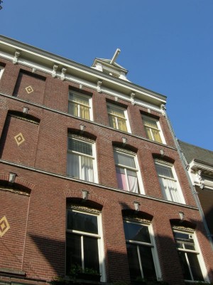 DSCN2810.jpg Amsterdam, centrum - Kamieniczki; Pokłony dla tych, co potrafili postawić miasto na wodzie...