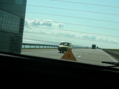 DSCN2854.jpg Droga na północ - Niestety za późno wygrzebałem aparat. Ale i tak w miarę widoczne auto znane co niektórym z Jasia Fasoli - trójkołowe auto, które Jaś zawsze spychał z parkingu :D Że też to na zakrętach się trzyma...