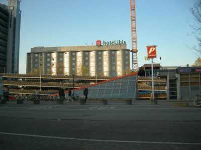 DSCN2920.jpg Amsterdam, centrum - Główna obsesja Holendrów - rowery. Chyba największy parking rowerowy jaki tam napotkałem, oczywiście zatłoczony (foto z auta, stąd jakość niestety jest jaka jest).