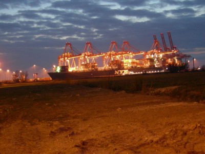 DSCN2944.jpg Amsterdam port - Statek NYK przerzucający kontenery wielkości ciężarówek jak pudełeczka od zapałek.