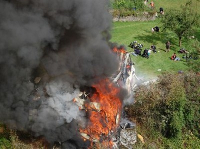 Mieszkańcy okolicznych domów natychmiast pośpieszyli z pomocą, starając się wiadrami z wodą ugasić pożar, który wybuchł w wyniku zderzenia pojazdu z kamiennym podłożem. Miejscowa policja i służby ratownicze mówią, że ślady hamowania wskazują na to, że kierowca próbował hamować przez 100 metrów. W akcji ratunkowej brało udział ok. 50 strażaków.