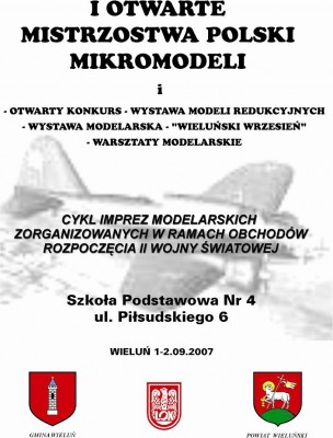 Wysłany: 2007-08-26, 11:34 I OTWARTE MISTRZOSTWA POLSKI MIKROMODELI WIELUŃ 2007