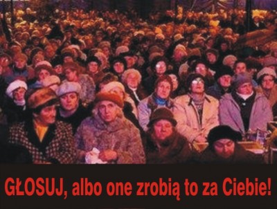 To tak jakby brać całkiem poważnie to zdjęcie, do którego był dopisek: IDŹ NA WYBORY, BO INACZEJ ONE WYBIORĄ ZA CIEBIE!