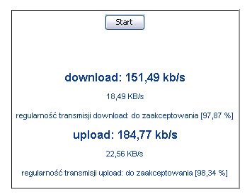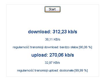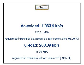 Na komórce w sieci + wyszło tak: down: 143, up: 56; ale łącze się przez port podczerwieni, to też może byc wąskie gardło.